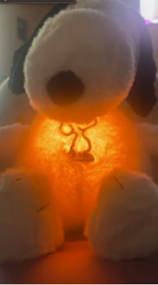 Siente cómo este peluche cobra vida: su respiración tranquila, su luz suave y su movimiento de panza crean un abrazo que envuelve tus sentidos.